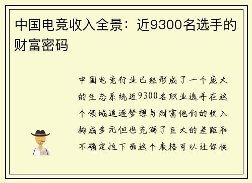 中国电竞收入全景:近9300名选手的财富密码
